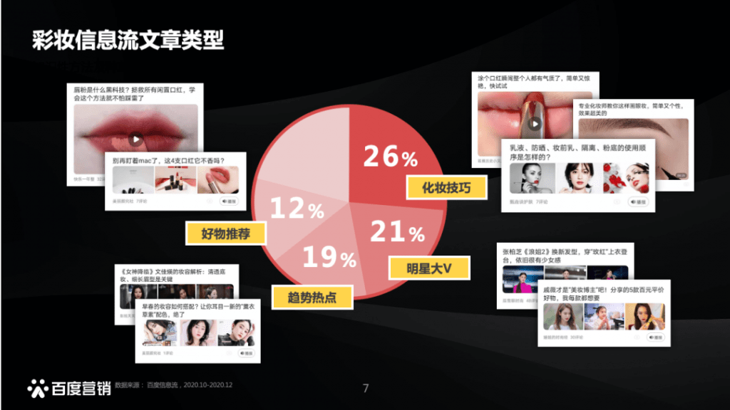 百度上已经沉淀了8.3万优质的彩妆行业专栏作者,每天稳定地为用户输出丰富的内容。平台日均阅读量超过3500万。其中,“化妆技巧”是用户最喜好阅读的文章类型,占26%。